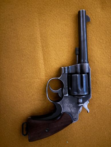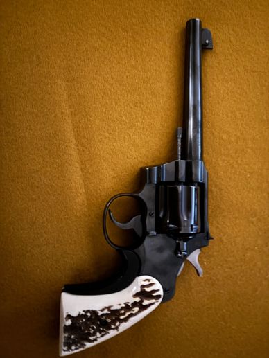 Historic piece, manu in 1919. Has 5.5" barrel. Manu by US Military to supplement M1911 pistols during WW1. Double action, About 152,000 of these produced by Colt.