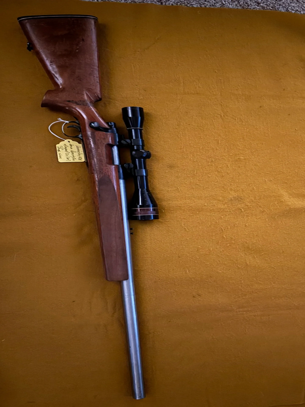 Has 27.5" s/s barrel, and 12X (w/adj obj) Leupold scope. Was manu in 1960s. Considerable wear, but a tack driver (6mm rem caliber).